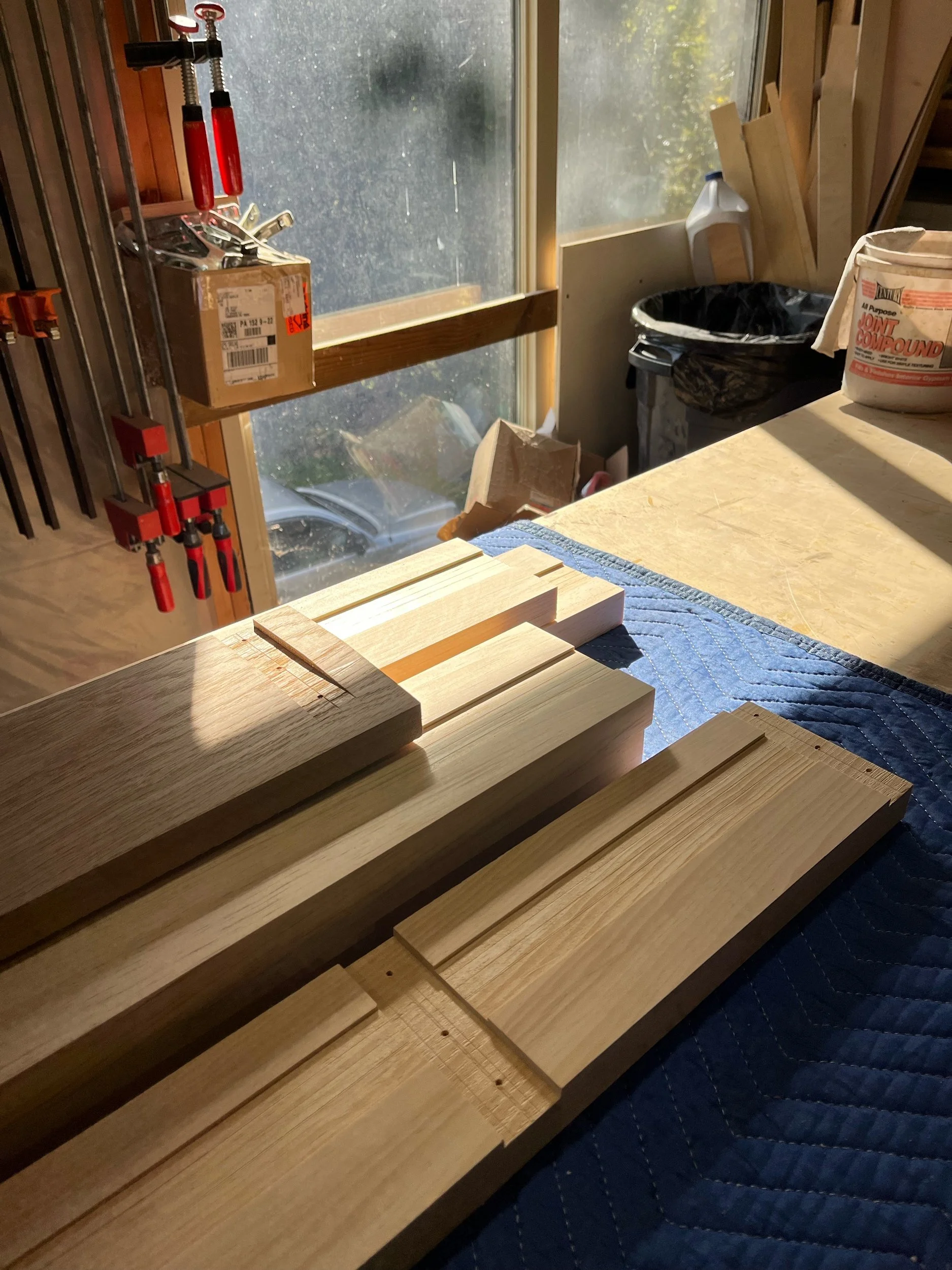 The goal of this project was to create a front entryway to this historic home that was more in tune with its character. The client sourced a glass entryway door, and requested we make a jamb and sidelights. We built all of the components from pine to match the door, but made the threshold from white oak because of its rot resistant properties. Everything was stained to suit, but weathering on the exterior of the door gave certain portions darker tones. We removed the former entryway and installed the jamb, glass, spring bronze, and other hardware on site. We also patched the concrete sill under the door to finish things off. It’s amazing to see how much warmer the front of the home is now.